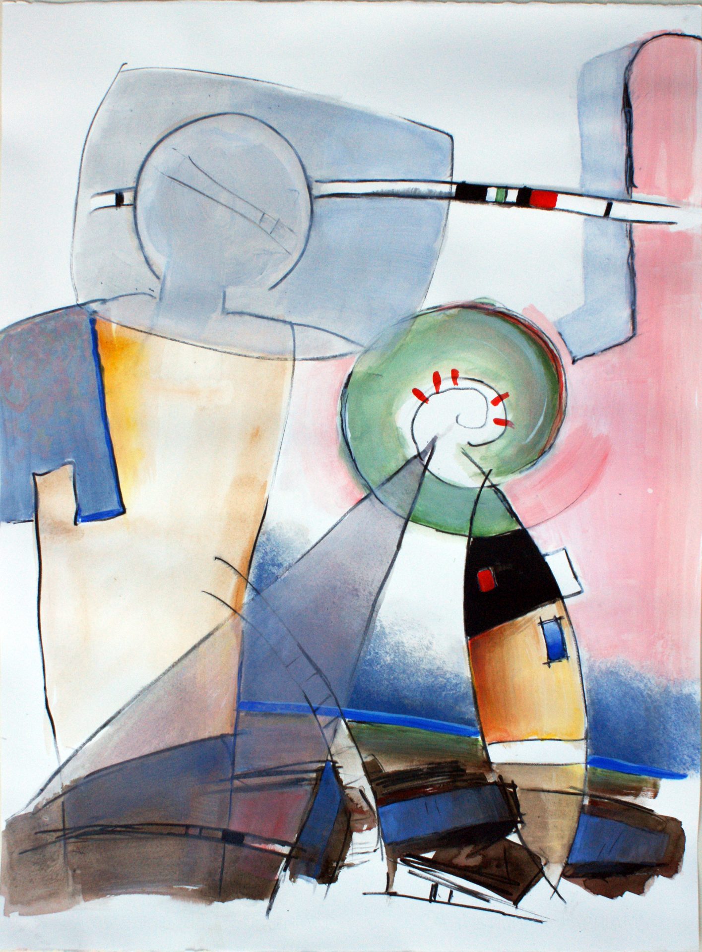 Ausdrucksstarke Komposition: Dynamische Formen und subtile figurative Elemente im Einklang