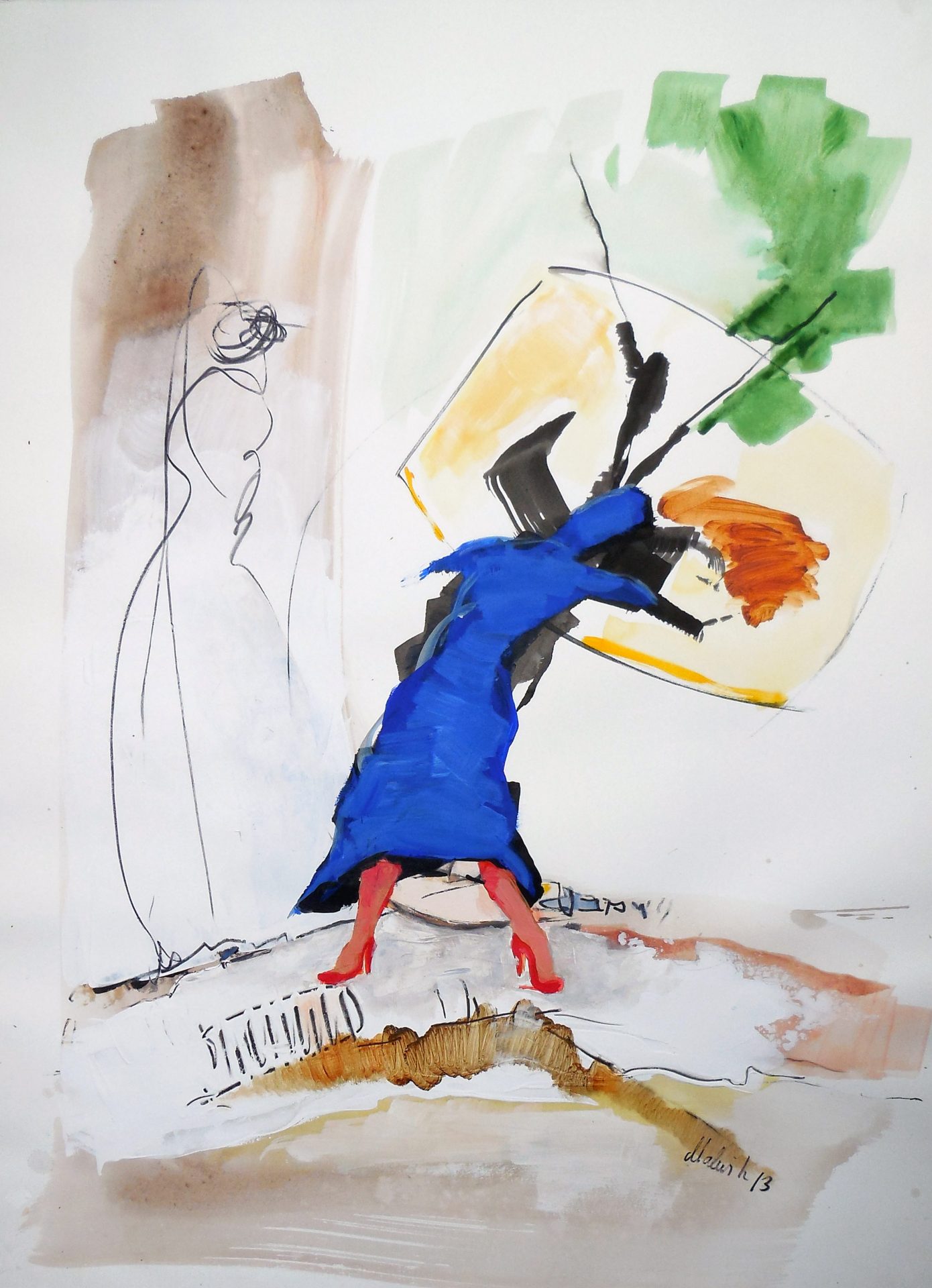 „Tanz“ ist ein energiegeladenes Originalwerk von Eberhard Malwitz, das die fließende Bewegung und emotionale Kraft des Tanzes in Farbe übersetzt. Eine wirbelnde rote Form steht im Zentrum und wird von kraftvollen braunen Pinselstrichen umgeben, die wie rhythmische Akzente wirken.